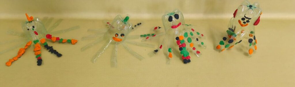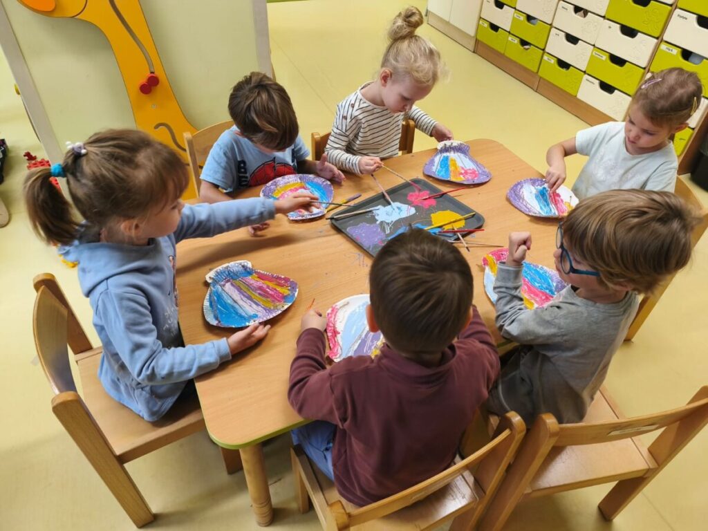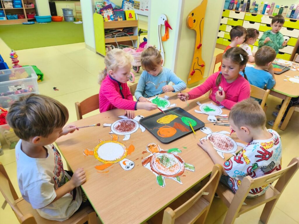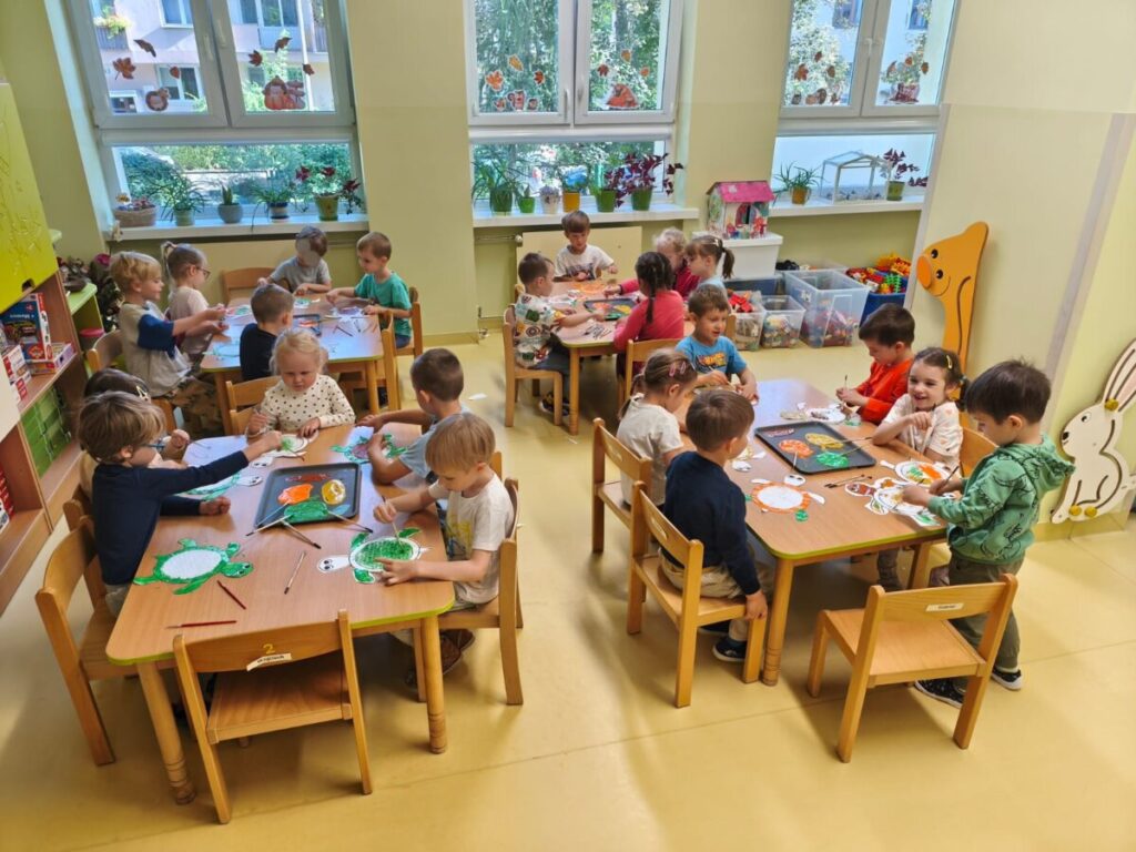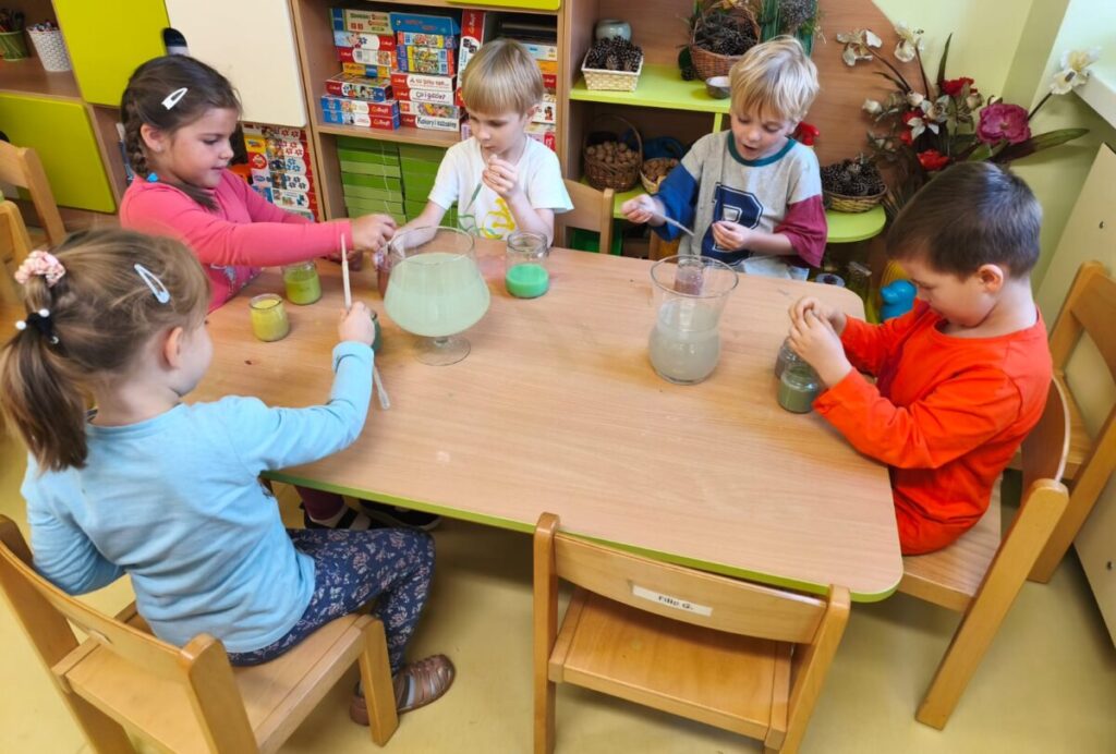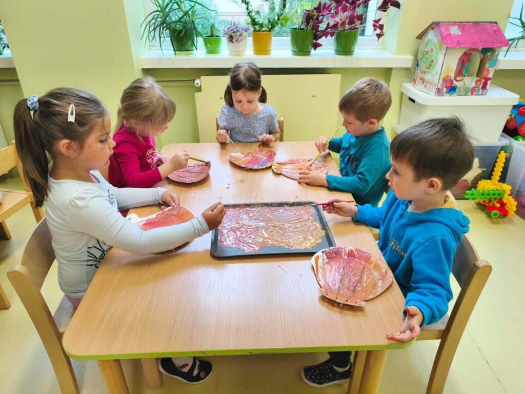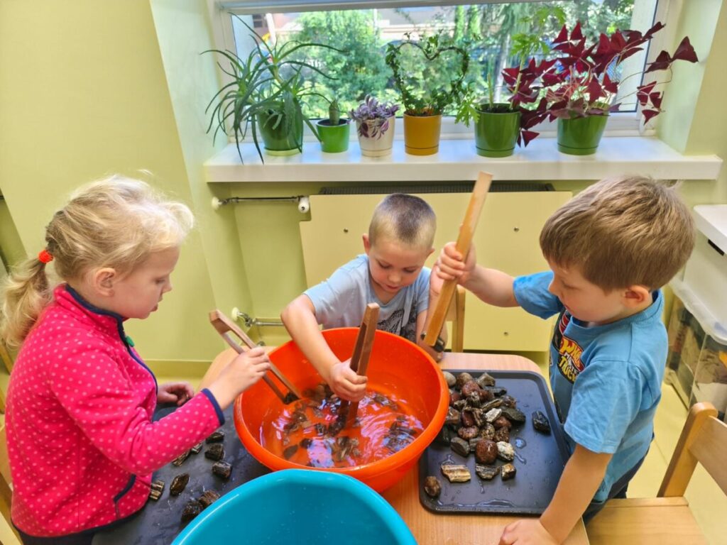 Dzieci w zespołach zabawowo-zadaniowych wykonują różne aktywności, często wykorzystując dary ucząc się systematyczności, odpowiedzialności i współpracy. Takim przykładem są zajęcia w których dzieci układały z darów Froebla wspomnienia z wakacji. Następnie wyławiały z wody muszelki i kamienie za pomocą szczypiec, co rozwija motorykę małą i koordynację wzrokowo-ruchową. Kolejnym przykładem są freblowskie przeplatanki z wykorzystaniem plastikowej igły, dzieci wyszywały tekturową muszelkę przeciągajac sznurek przez otwory. Przeplatanie to doskonały trening zręczności, dokładności i koordynacji wzrokowo-ruchowej. Dzieci eksperymentowały z zabarwioną wodą i pipetami oraz tworzyły prace plastyczne z użyciem różnorodnych materiałów min. folii bąbelkowej. Przedszkolaki przeliczały muszelki, patyczki zgodnie z podaną cyfrą lub figurą liczbową.