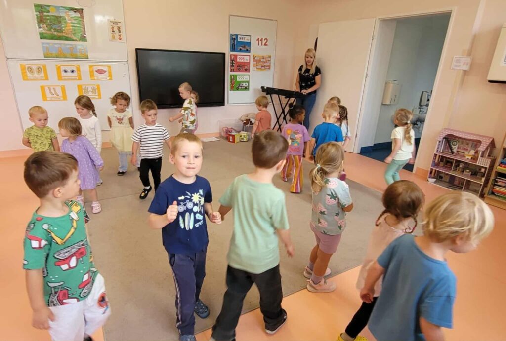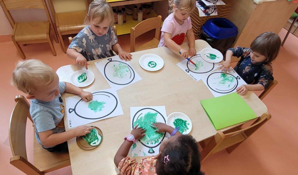 Przedszkolaki z grupy 1 spędziły pierwsze dwa tygodnie na zabawach integrujących, poznając nową przestrzeń w przedszkolu i na terenie zielonym. Aktywności muzyczne, plastyczne i ruchowe sprzyjały dobrej zabawie i wspierały proces adaptacji w nowym miejscu.