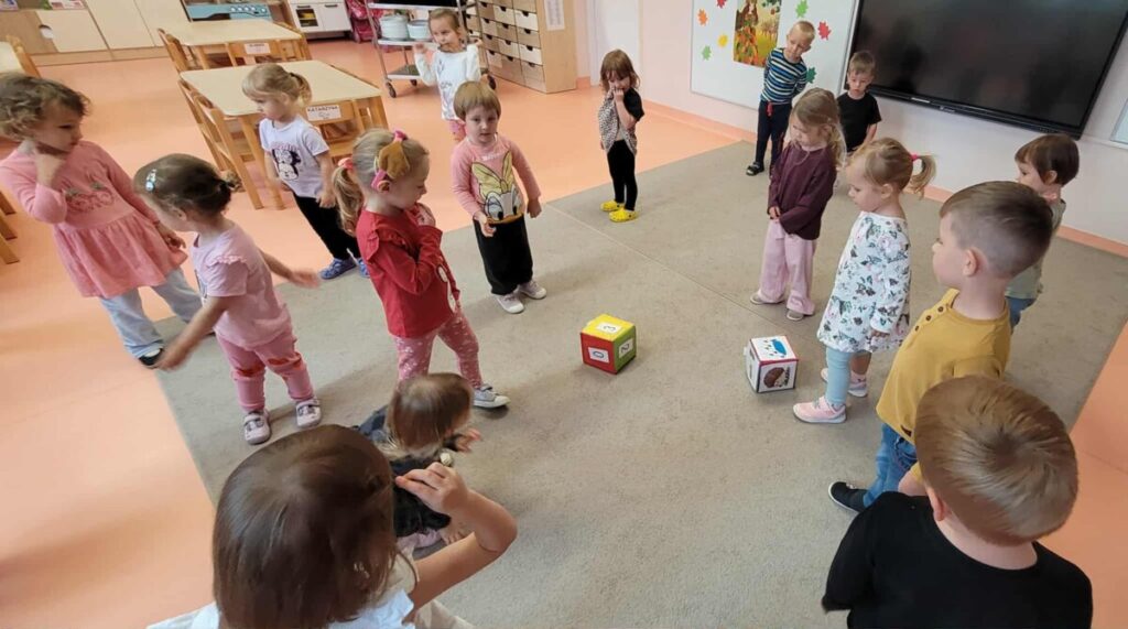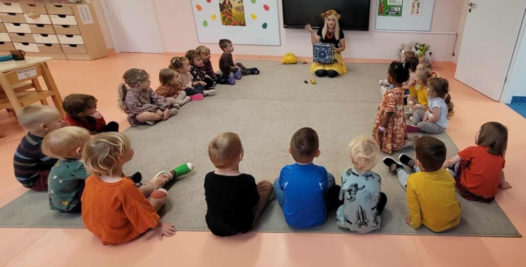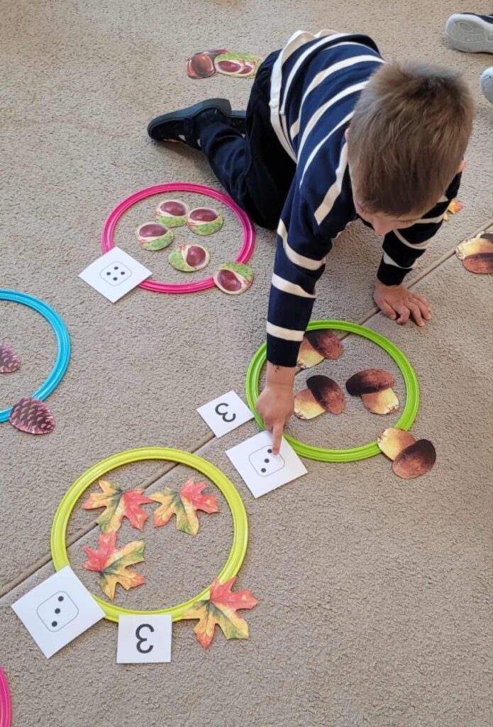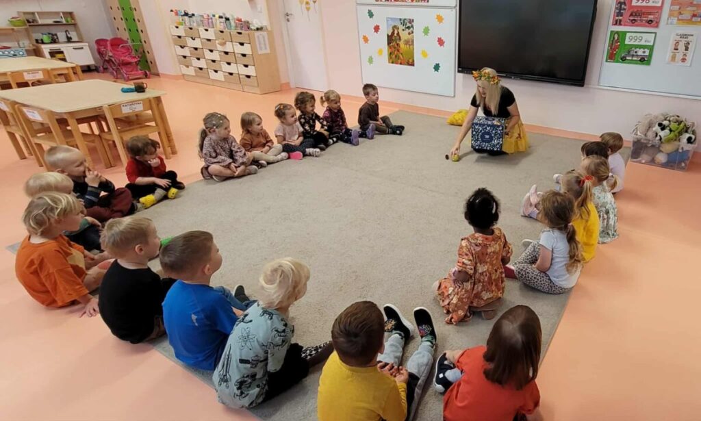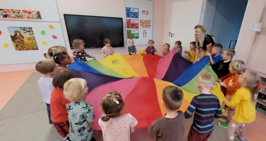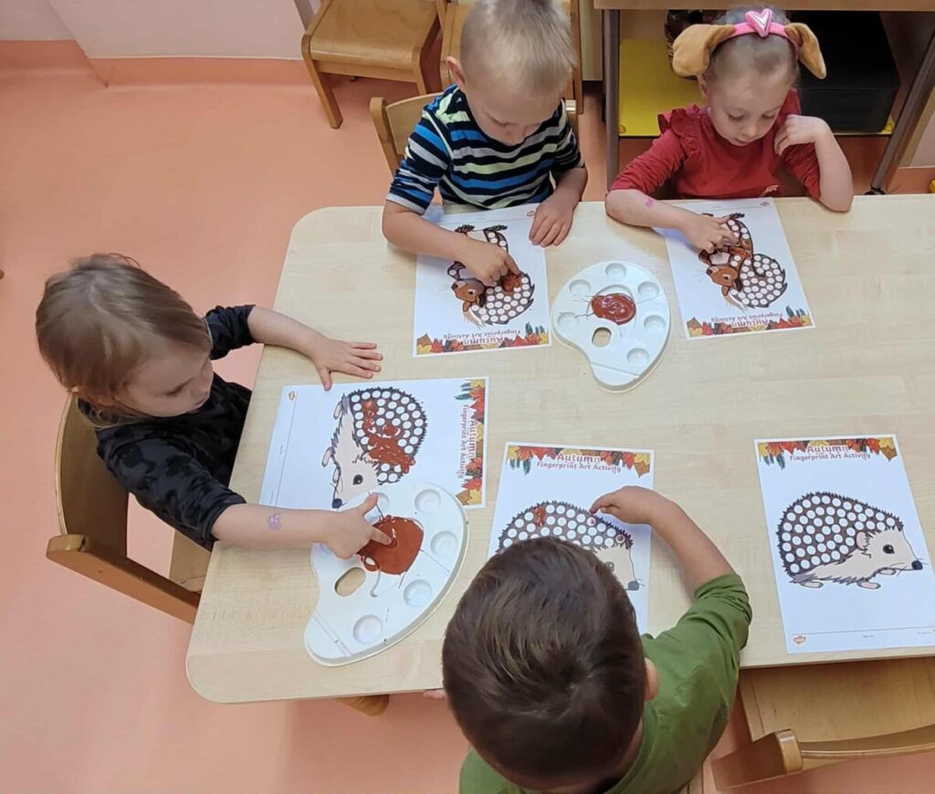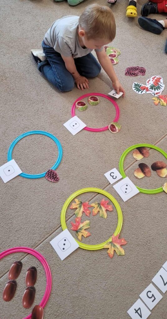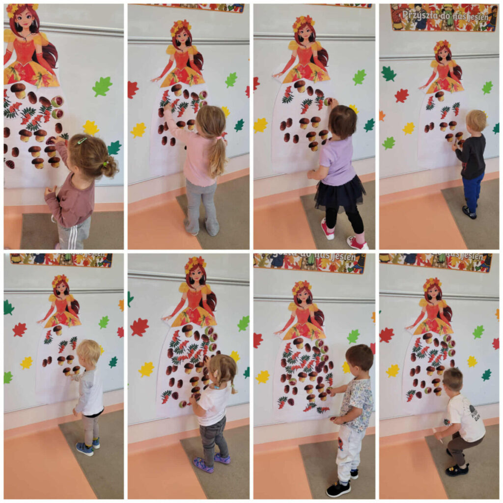 Przedszkolaki witają Panią Jesień – zajęcia tematyczne pozwalają rozwijać wrażliwość muzyczną przy zabawach z muzyką klasyczną i piosenkach, kształtować sprawność manualną, spostrzegawczość i pamięć. Jesienne akcesoria doskonale nadają się też do ćwiczenia umiejętności matematycznych poprzez działanie na konkretach.