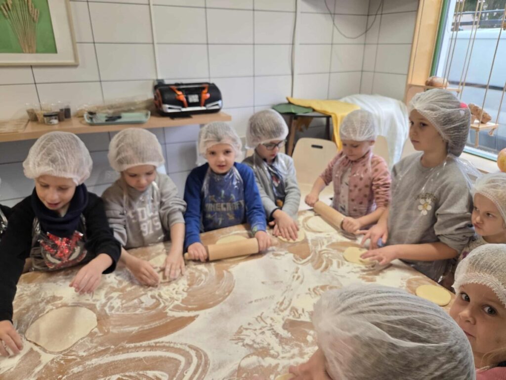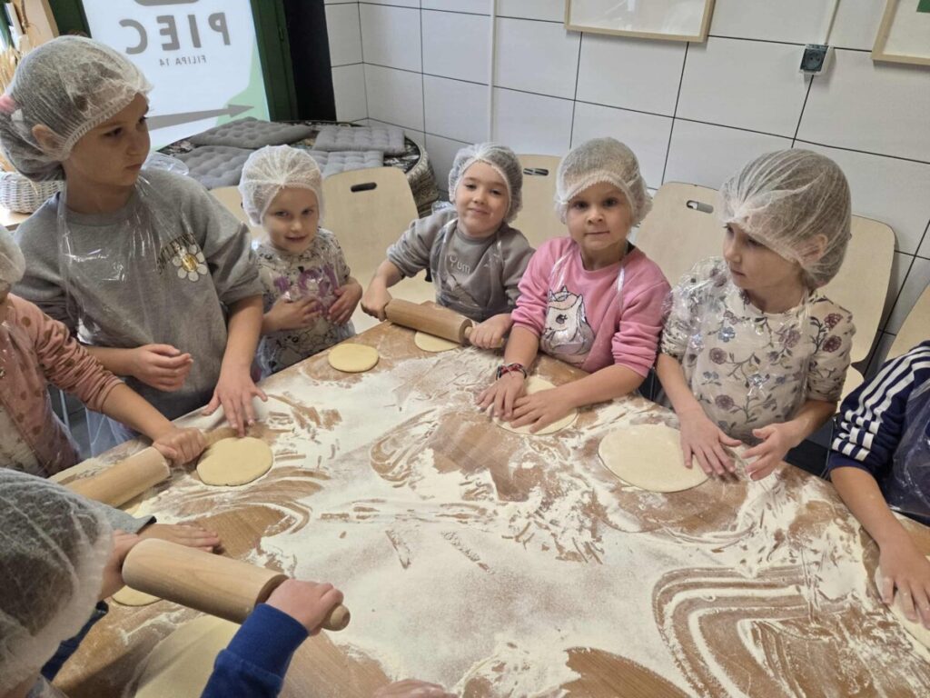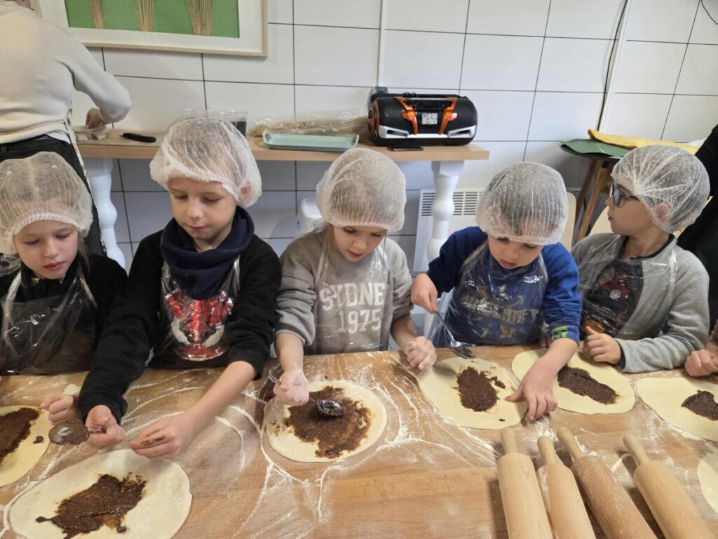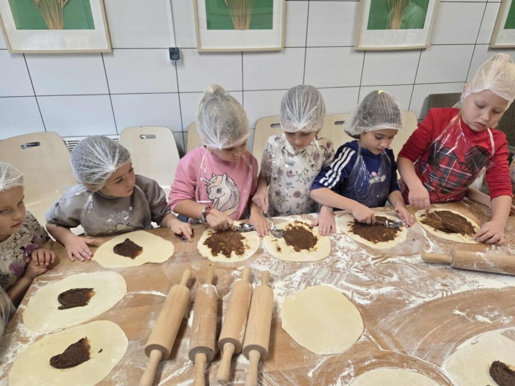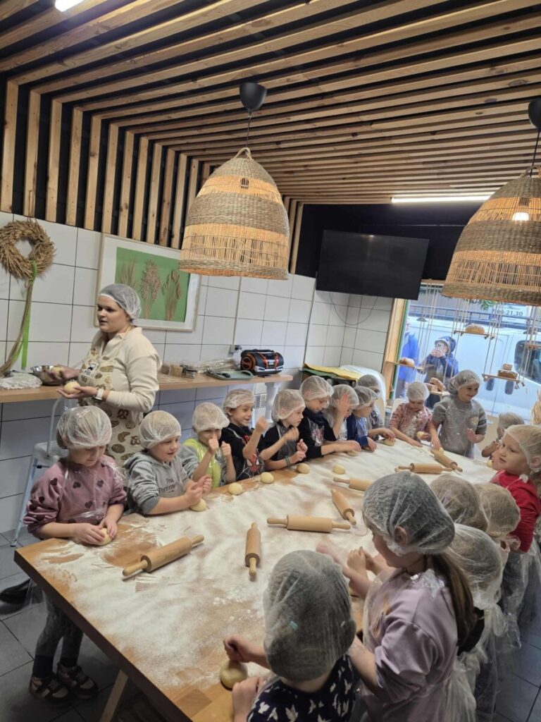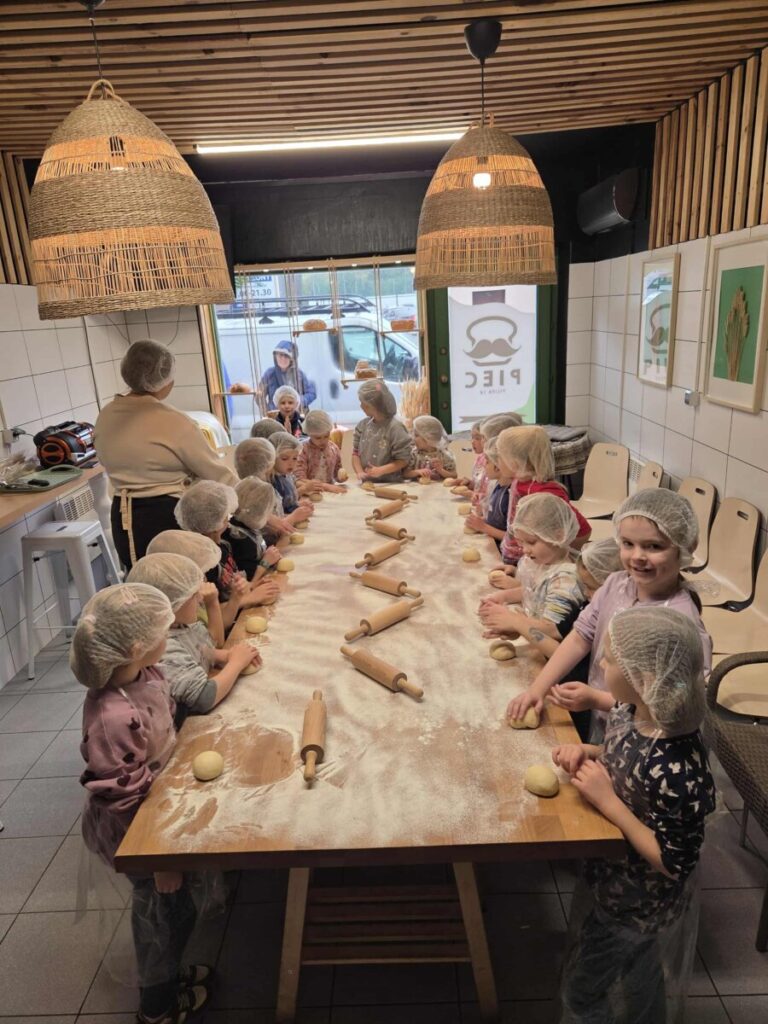 Przedszkolaki często odwiedzają różnorodne miejsca w pobliskiej okolicy. W październiku udały się na warsztaty piekarskich w piekarni Piec. Na zajęciach dzieci poznały etapy postawania chleba, zwiedziły piekarnię i obserwowały pracę piekarza, a na koniec zajęć zrobiły własne drożdżówki cynamonowe.