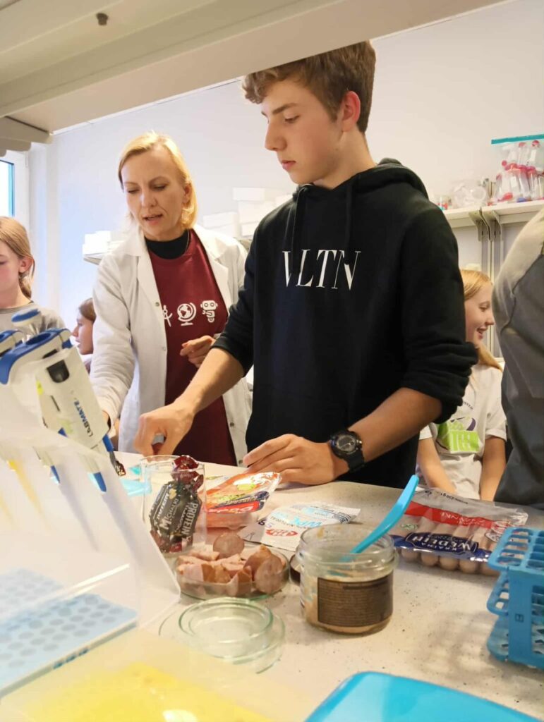 Uczniowie naszej szkoły wzięli udział w Małopolskiej Nocy Naukowców na Uniwersytecie Komisji Edukacji Narodowej w Krakowie. Podczas wizyty na uczelni młodzi naukowcy uczestniczyli w zajęciach laboratoryjnych w Instytucie Biologii i Nauk o Ziemi na temat białek. Wysłuchali ciekawej pogadanki na temat roli białek w organizmie, a następnie wykonali reakcję biuretową, wykrywając białka w produktach spożywczych. Po zajęciach laboratoryjnych uczniowie spędzili miło czas grając razem w planszówki w Instytucie Matematyki UKEN. Może za jakiś czas będą tu studiować?