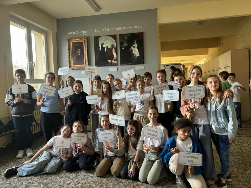 W związku Rokiem Jubileuszowym, samorząd uczniowski zaplanował aktywności przeznaczone dla wszystkich uczniów SP 106 a wspierające wzajemną integrację oraz promujące postawy wsparcia i budowania wspólnoty. Dzień Barw Szkoły w SP 106 był okazją do zabawy i rozmowy o ważnych sprawach. Mówiliśmy o postawach przyjaźni, solidarności oraz o wartościach uniwersalnych. Przynależność do wspólnoty podkreślaliśmy zarówno strojem jak i barwami szkolnymi. W ramach konkursu wiedzy o szkole należało przygotować wiadomości m.in. o patronie szkoły, Arturze Grottgerze, historii budynku i dzielnicy, warto było przeczytać w szkolnej gazecie ciekawostki o terenie SP 106 czy zwyczajach i miejscach istotnych dla uczniów. Wydarzenie cieszyło się popularnością a wybór zwycięzcy był bardzo trudny.